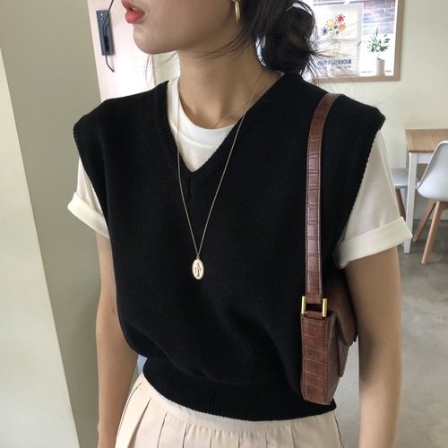 브이넥 레이어드 무지 루즈핏 니트 조끼 베스트