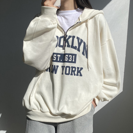[44~88/빅사이즈] 왕 오버핏 레더지퍼 브루클린 반집업 후드티]브루클린하프집업
