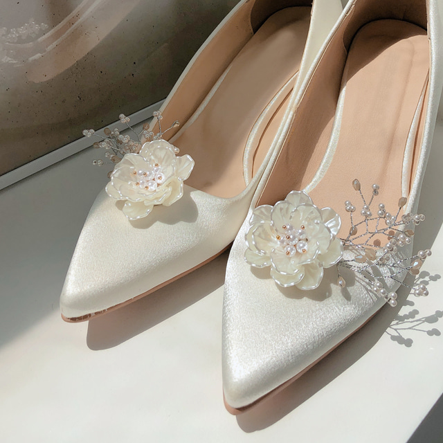 [자체제작] 웨딩슈즈코사지 셀프웨딩 스와로브스키 진주 비즈 플라워