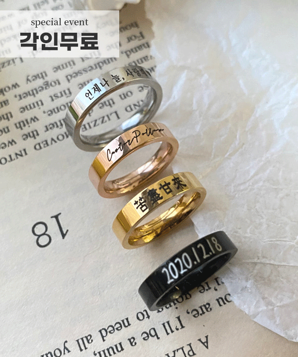 [각인무료] 써지컬스틸 4mm 평 유광.무광 각인반지 (4color,블랙각인 화이트각인)