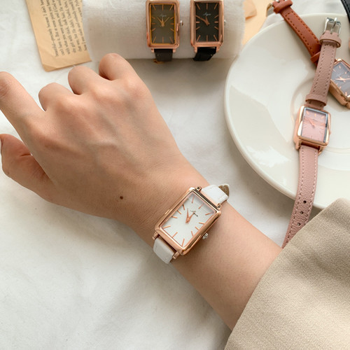 [6컬러] 스퀘어 레더 여성 메탈 가죽 손목시계