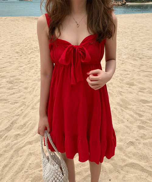 [오늘출발] 키작은 언니들을 위한❤️mini ver.킬링포인트 스모크 리본밴딩 요루 나시주름 원피스 바캉스 비치원피스 색상추가 4color 블랙,화이트,레드,오렌지 44~77size 당일발송
