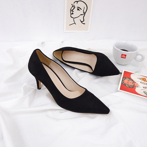 투톤 배색 스웨이드 스틸레토 미들힐 펌프스 7cm