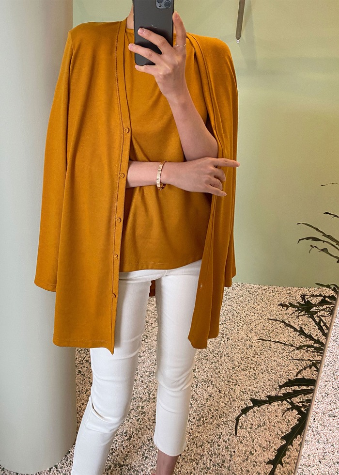 소프트 민소매가디건 SET - [아이 소라 머스타드 블랙]