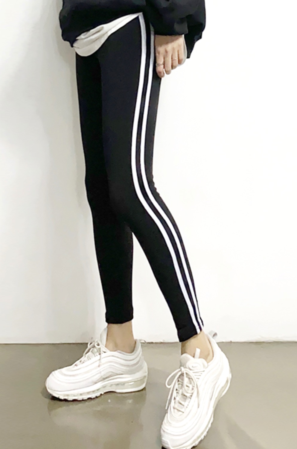 1+1 겨울 기모 레깅스 안감밍크 허리밴딩 하이웨스트 스키니 트레이닝바지 기본/두줄