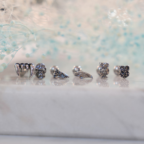 이빨,해골,날개,부엉이 모양 써지컬스틸 피어싱 모음