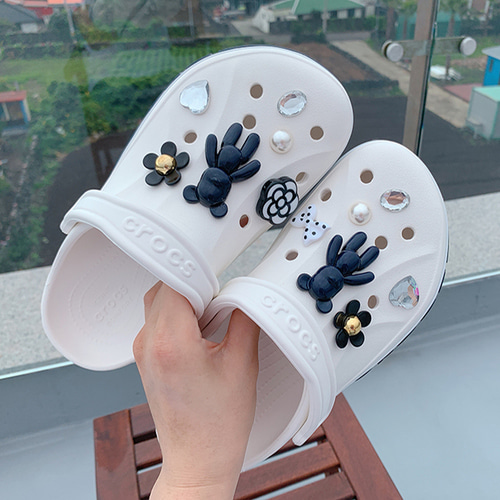 블랙곰돌이자비츠/신발악세사리/신발꾸미기/귀여운자비츠/큐빅자비츠