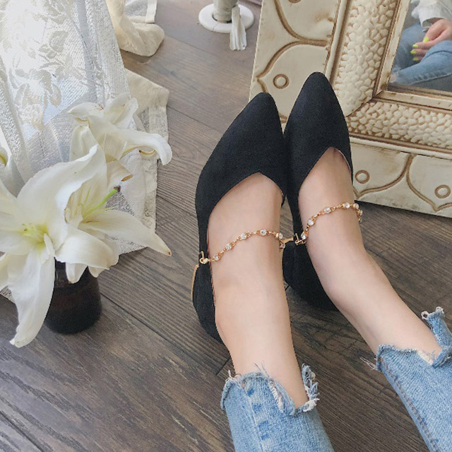 쥬얼리 발등스트랩 스틸레토 플랫슈즈 (블랙,베이지)