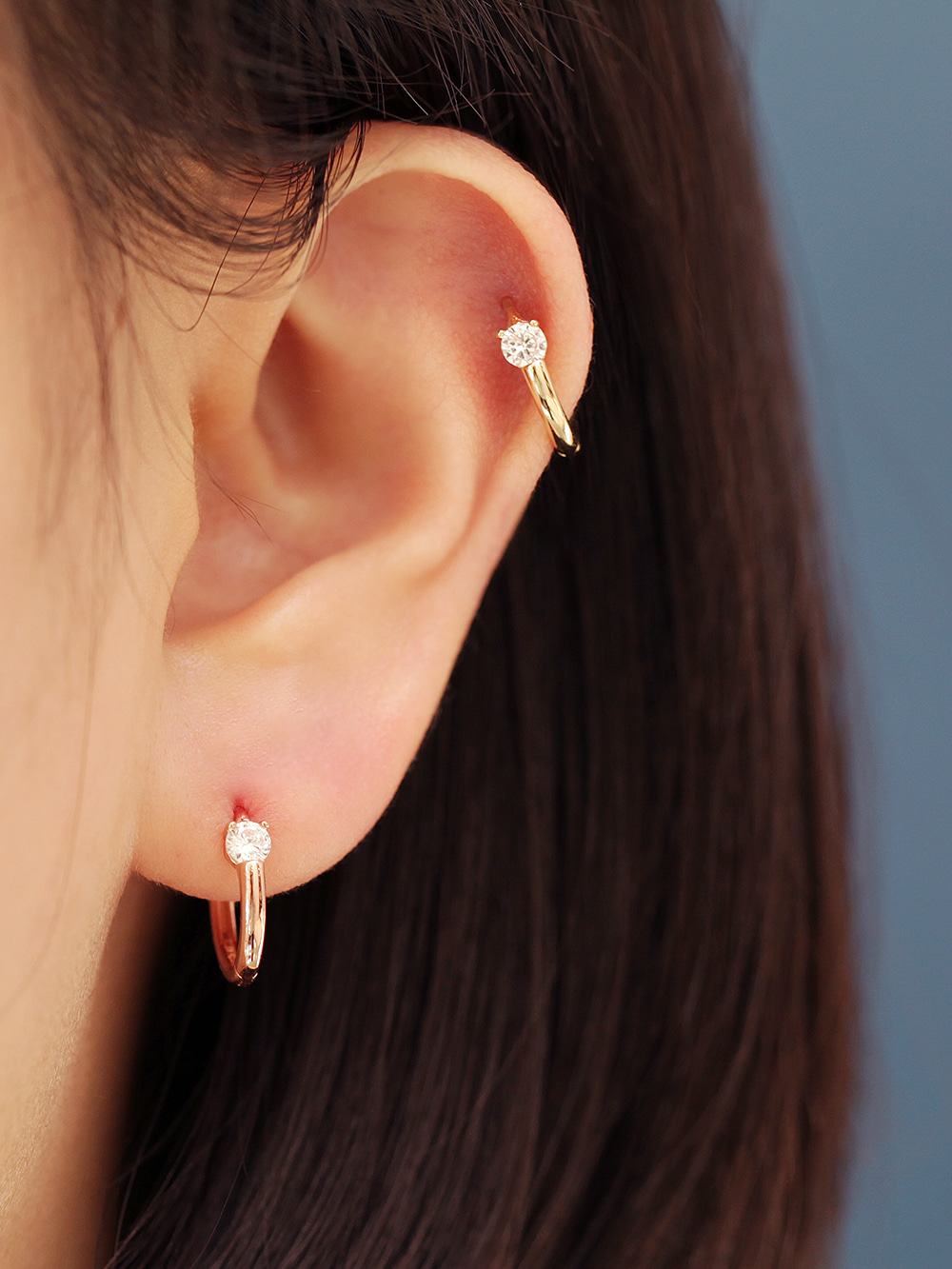 14K 포인트 큐빅 링 피어싱 귀걸이