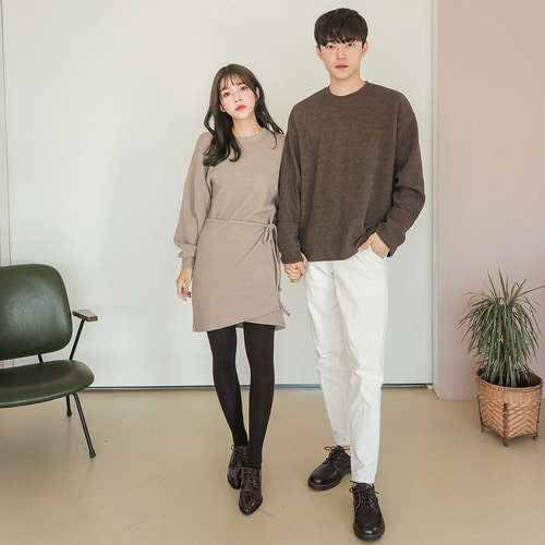 [커플시밀러룩] 골지 랩 원피스/여(상의),골지 오버핏 셔츠/남(상의),원턱 스판 면바지/남(하의)