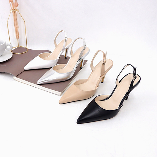 아찔한 매력 쿠션 스틸레토 슬링백힐 9cm