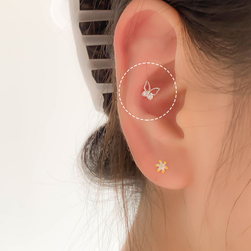 (실버925) 아웃컨츠 귓바퀴 디어 포인트 큐빅 나비 피어싱