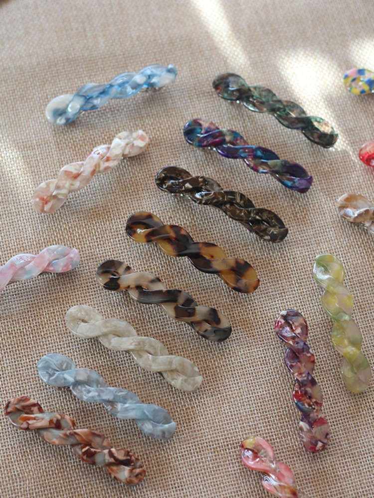 프랑스핀 마블 호피 트위스트 앞머리 자동 머리핀