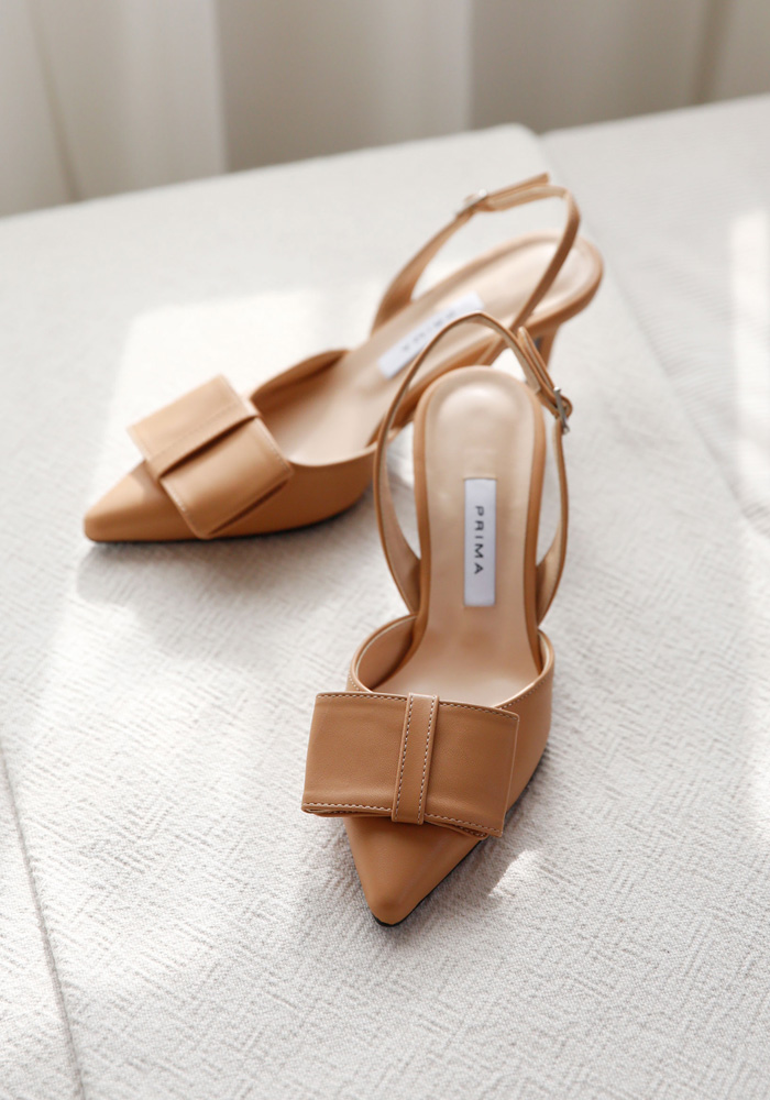 국내제작 스틸레토 리본 미들굽 슬링백힐 7cm 3컬러