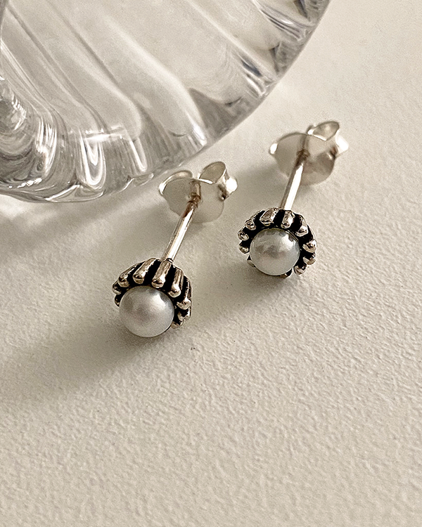 [무배] 실버925 미니 엔틱 프레임 담수진주 스터드 귀걸이