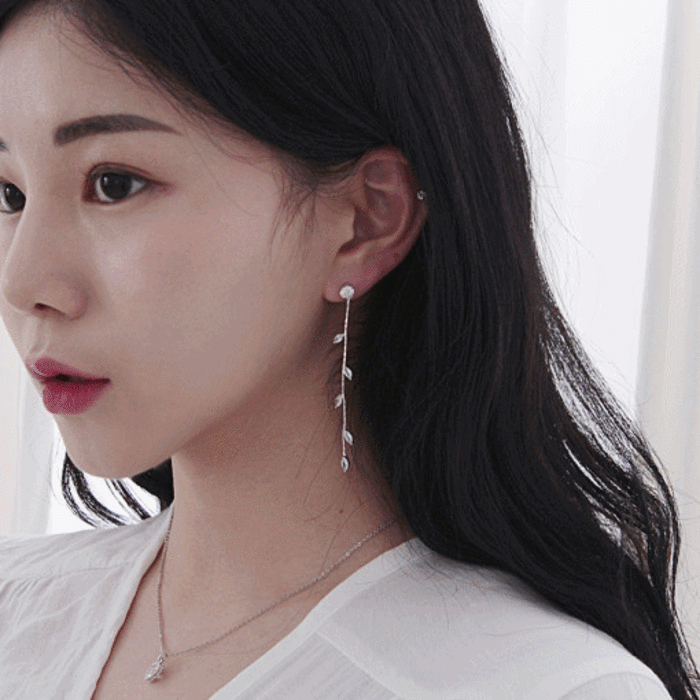 [2color] 화려한 크리스탈 로즈골드 롱드롭귀걸이 나뭇잎줄 035