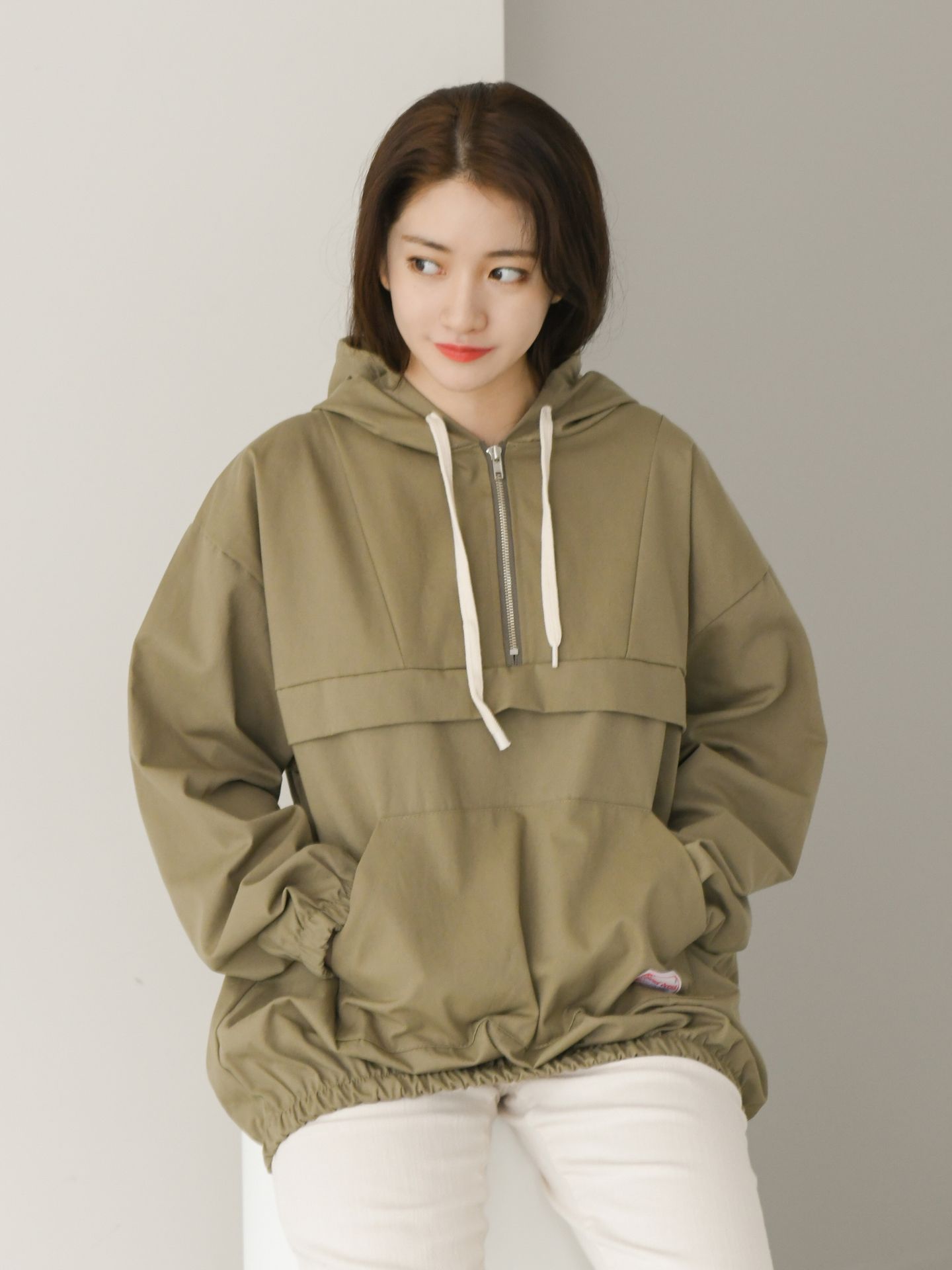 AH AH NO NO 롹롹 후드티 아노락 반집업 후드 티셔츠(베이지 카키 블랙)