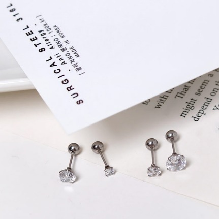 써지컬스틸 큐빅잠금볼 피어싱귀걸이(피어링/잠금볼)