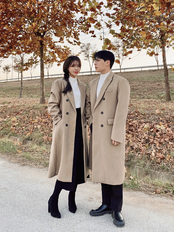 [ 겨울 커플시밀러룩 / 남녀공용 ] AY 윈터 베이지 울 누빔 더블 롱코트