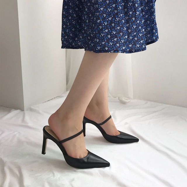 델피린 스틸레토 발등밴딩스트랩(슬링백겸용)뮬힐 9cm