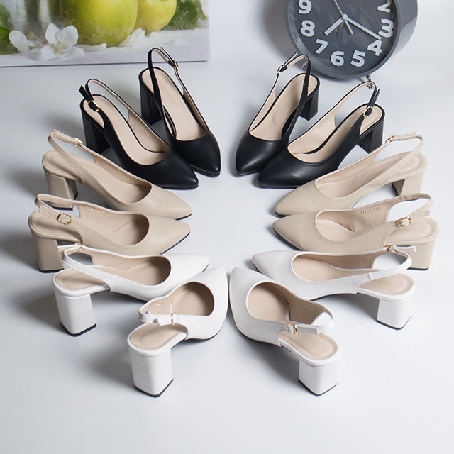 뽀쪽코 수제 미들굽 슬링백힐(6cm/8cm)