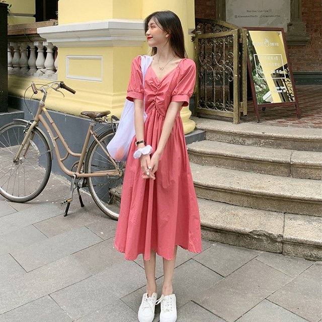 무료배송 제인 콩단추 플레어 원피스 (퍼플,화이트,핑크)