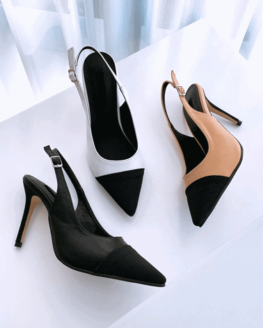 벨랑 뾰족코 공단 샤 슬링백 스틸레토 키튼힐 펌프스