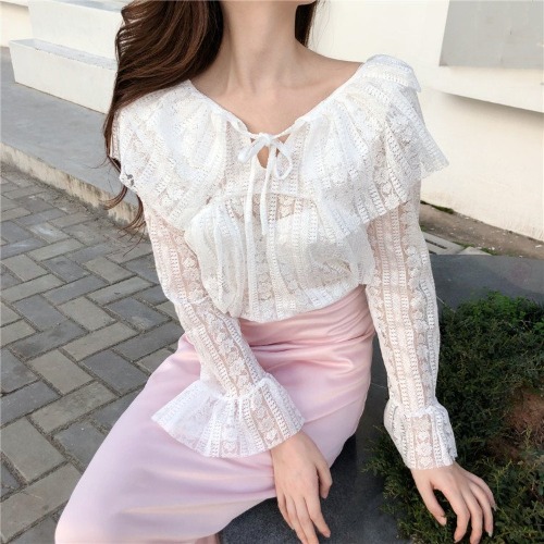 (당일발송) 레이스 셔링 끈 블라우스