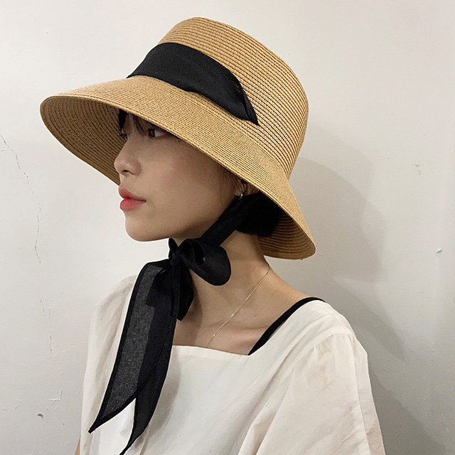 여름 밀짚 리본 스트랩 지사 벙거지 버킷햇