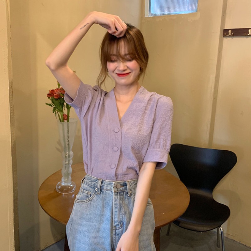 [당일배송] 반팔 쉬폰 버블 슬리브 블라우스