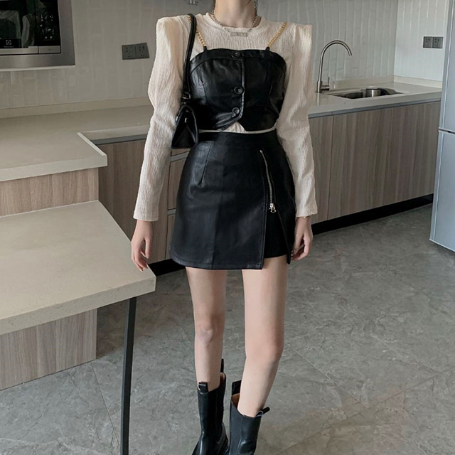 무료배송 [코디세트 탑+뷔스티에+스커트] 리턴 레더가죽 3피스셋업
