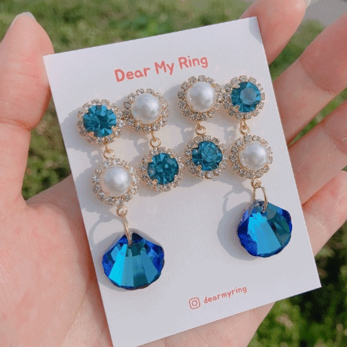 머메이드 큐빅 진주 조개 드롭귀걸이 은침 (블루, 퍼플)