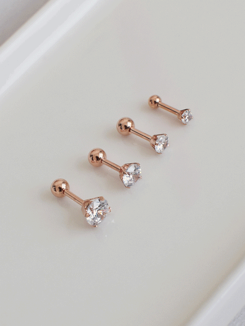 [써지컬스틸] 로즈골드 큐빅 바벨 피어싱