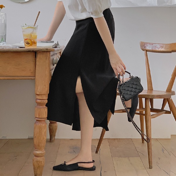 [군살커버/살랑살랑🍃][MADE] 투앤디 뒷밴딩 트임롱스커트(44~100) (체형커버-빅사이즈롱스커트-언발스커트-플레어스커트-하객룩-A라인스커트-밴딩스커트-트임치마-가을하객룩)