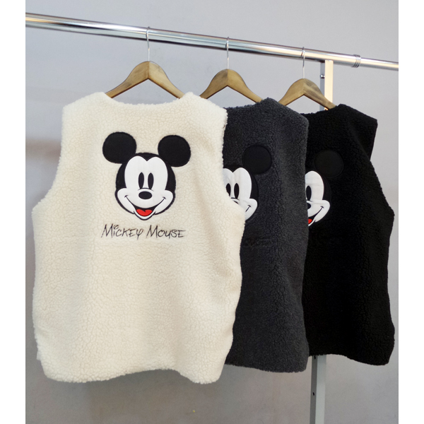 (디즈니정품)덤블미키마우스 조끼)후리스/레트로/뽀글이/양털/솜털/뽀송이/뽀글이/미키얼굴패치나염/지펌/아이보리/블랙/먹색
