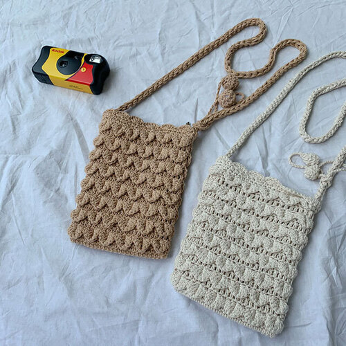 [당일발송!] 물결 니트 미니 라탄 크로스백 2color