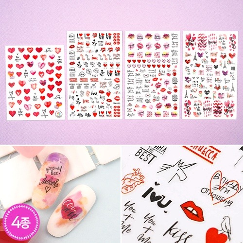 네일 스티커-멜티러브 /하트/먹번짐/캘리/네일데칼