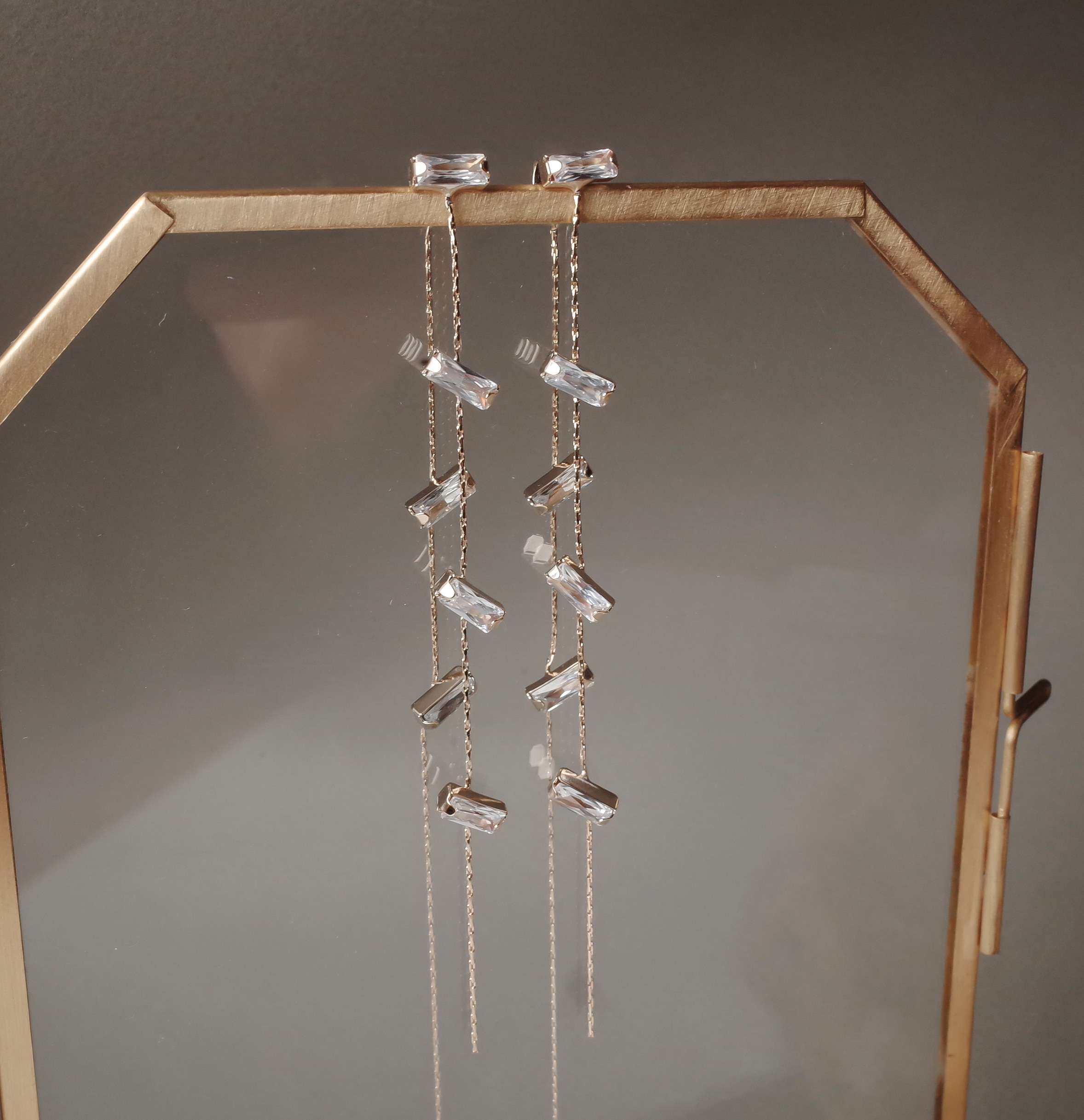 [베네노제작/무배] 샤론 직사각큐빅 글라시 반짝 롱 체인이어링