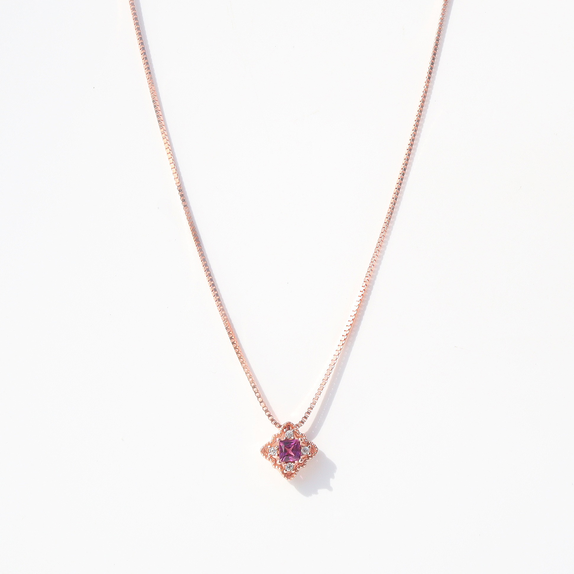 천연석 핑크 토파즈 스퀘어컷 로즈골드 네크리스
