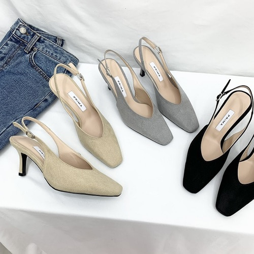 [국내제작 수제화] 스웨이드 슬림 스퀘어 사각코 슬링백 미들힐 펌프스 7cm