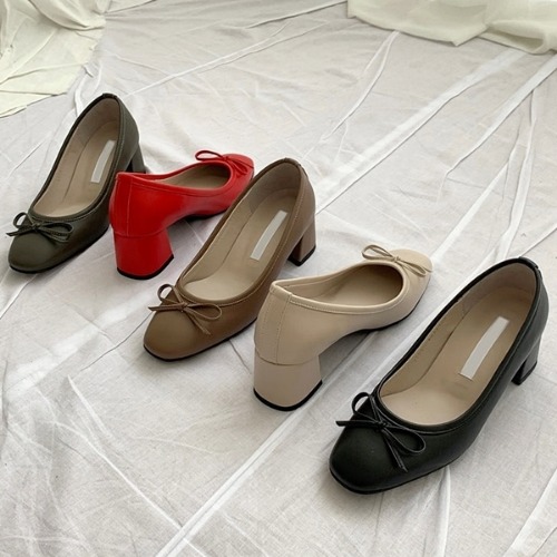 굽있는 리본슈즈 미들힐펌프스 5cm 5color
