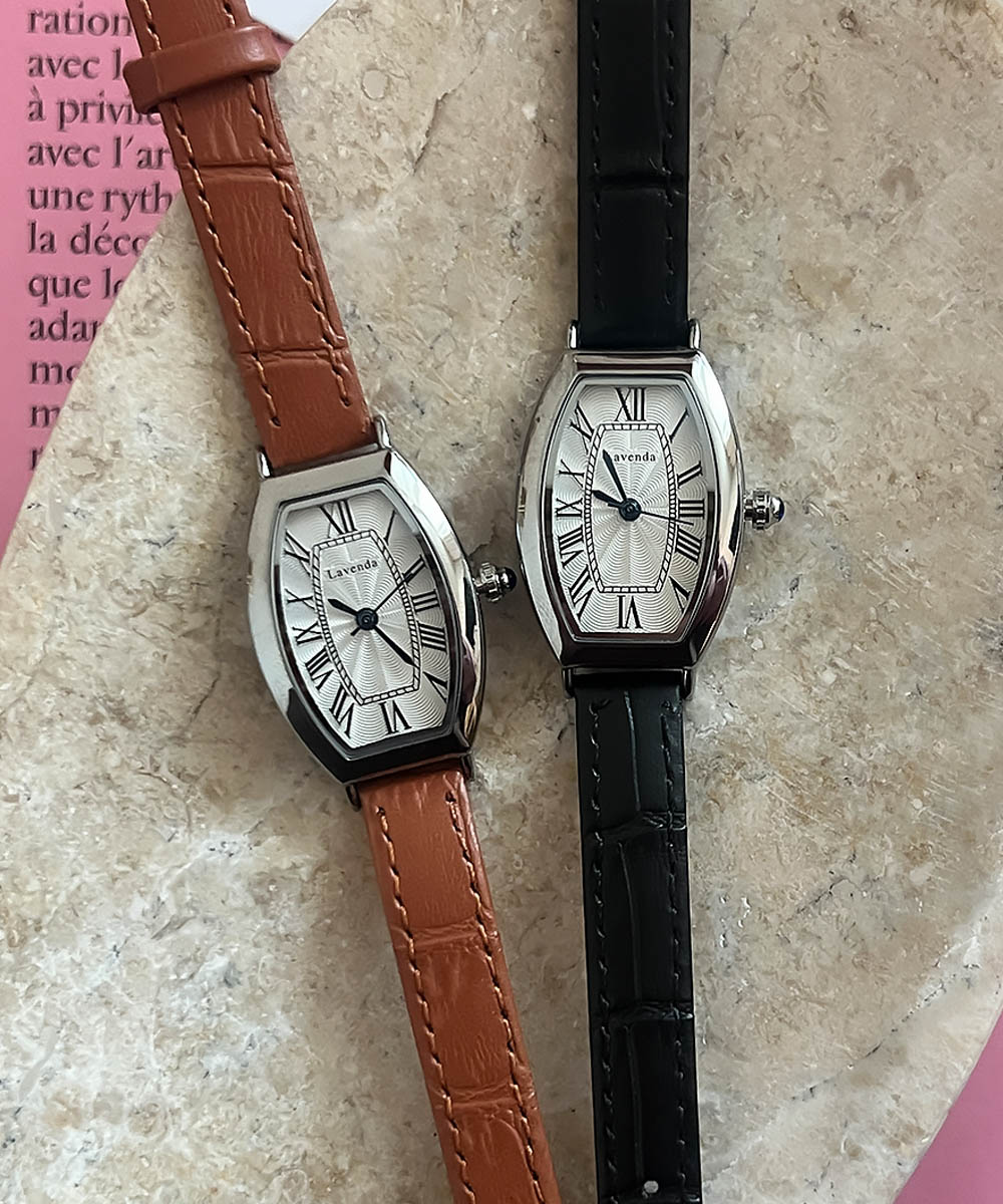 [무배] 클래식 타원 소가죽 시계 (블랙 브라운)