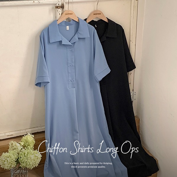 [스트랩포함/투웨이✌🏻][MADE] 카인 쉬폰 반팔 셔츠 롱원피스(44~110) (여름-여름셔츠원피스-빅사이즈쉬폰셔츠원피스-체형커버-스트랩원피스-일자핏-루즈핏원피스-반팔원피스)