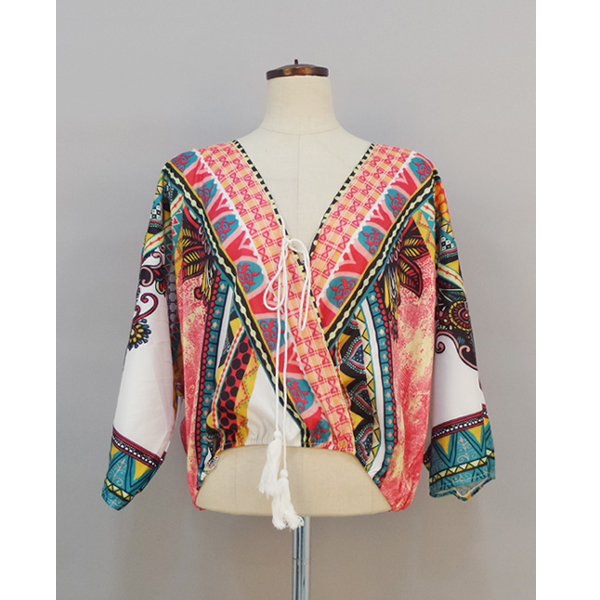 구짜패턴 bl)무늬스타일블라우스허리밴드퍼프소매가오리핏/5부여름여성신상쉬폰여름소재프린트박시플라워