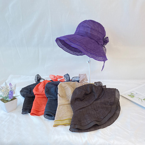 와이드 러플 챙 리본 여름 여성 벙거지 모자