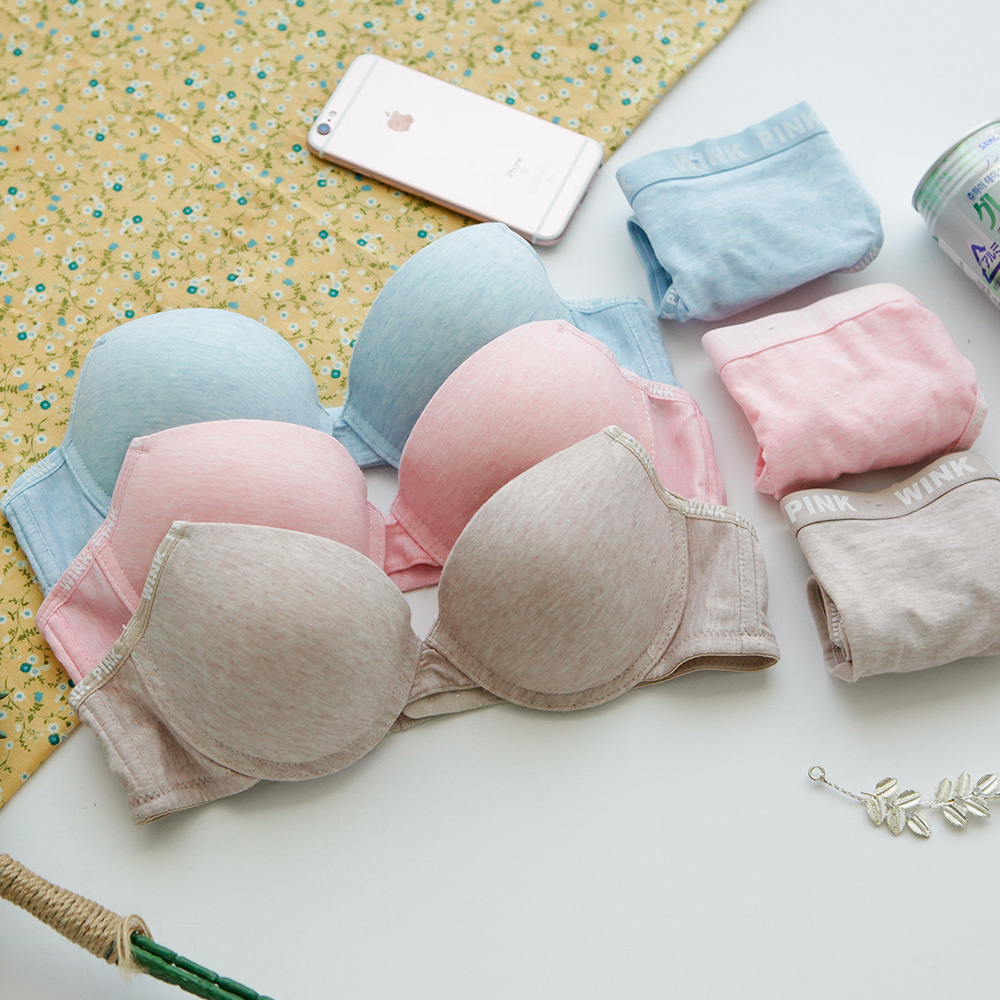 (6종 캐주얼핏) 코튼 파스텔톤 와이어 여성속옷 브라팬티세트 학생속옷 학생브라팬티 / W_614