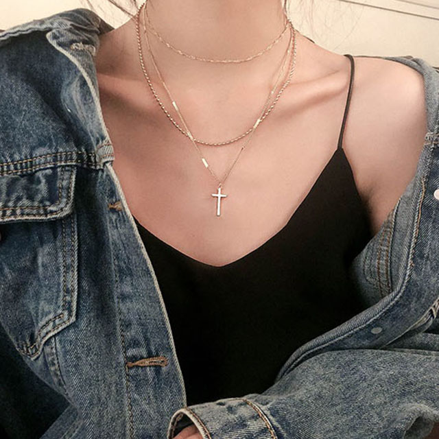 십자가 3레이어드 패션코디 목걸이(골드,실버)