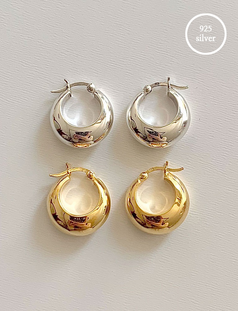 [925실버] 플레인 하프문 볼드 링귀걸이