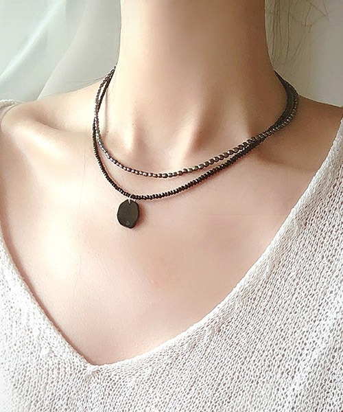 14k 다각형오닉스 천연석 블랙스피넬목걸이