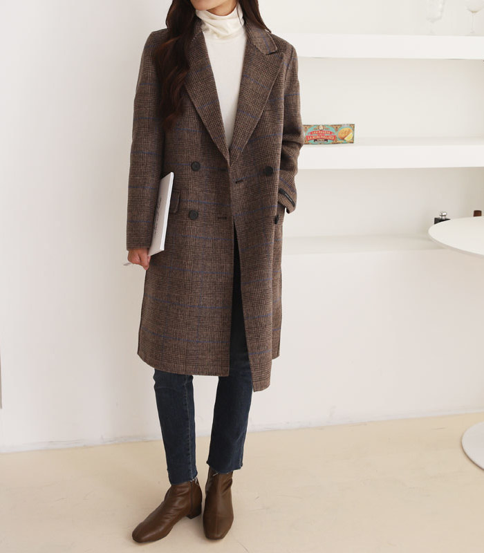 울90 체크 핸드메이드 여성 롱 코트